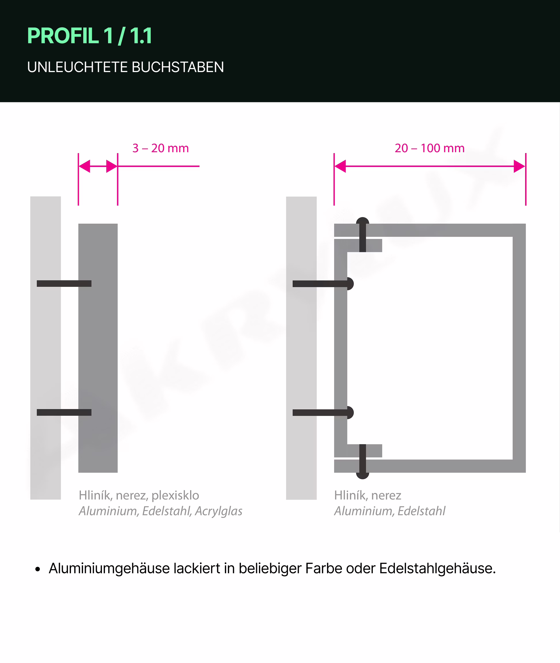Produkte: 3D Buchstaben & Logos, Fassadenverkleidungen, Werbepylone, Werbeattiken, Ladenfronten
